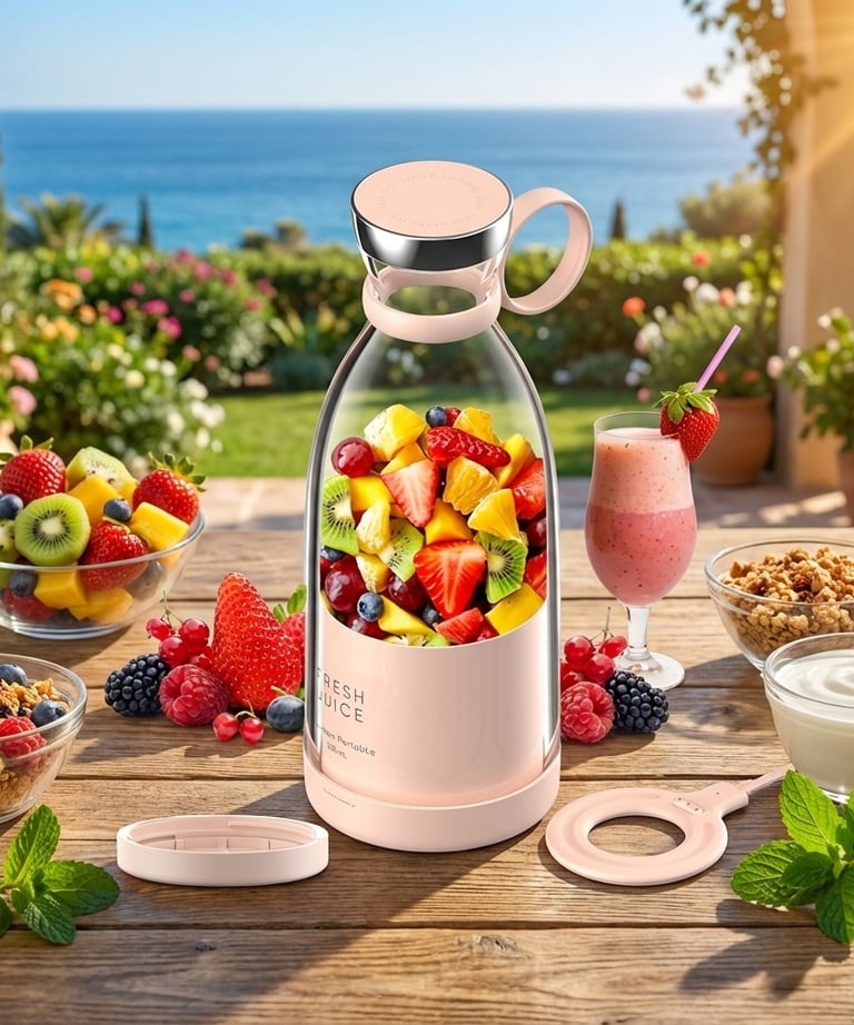 Meyve, buz ve protein tozunu saniyeler içinde karıştırır.